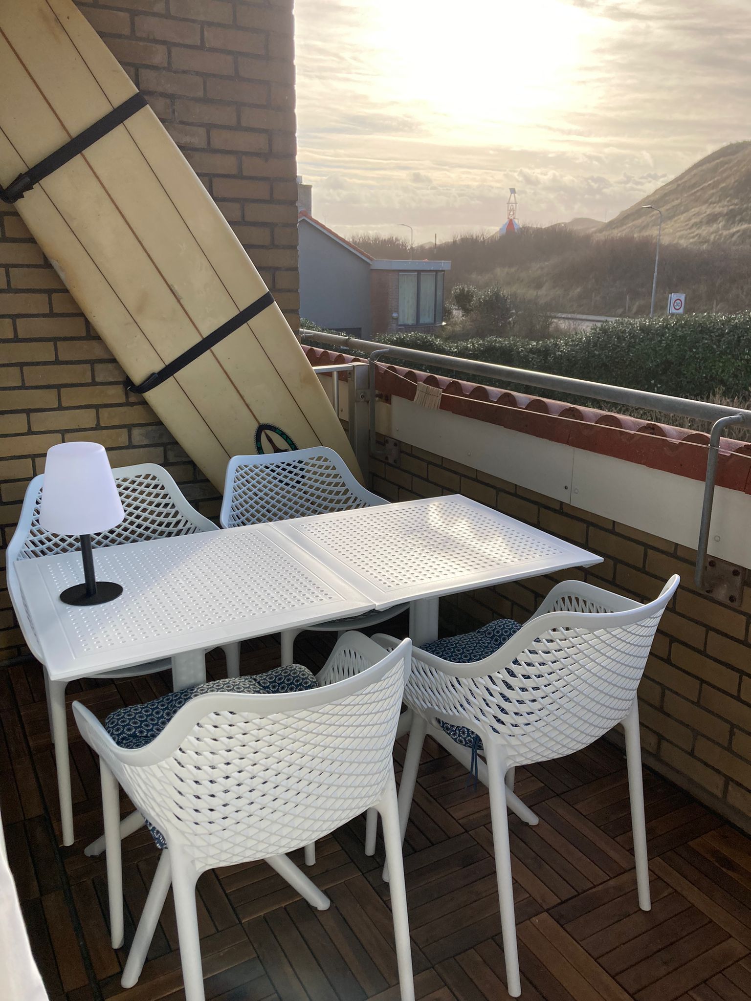 Vanwege de gunstige zonligging is het hier op de zomeravond nog lang aangenaam en kunt u de zon achter de duinen zien verdwijnen. Ook hier hebben we het strandgevoel zoveel mogelijk naar het balkon gehaald. Vanwege de flexibele tuinset kunt u het balkon tijdens uw verblijf gemakkelijk naar uw wens gebruiken.
